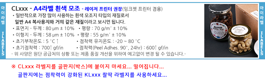 - 아이라벨 CLxxx 흰색모조지 - 모델번호별 분류 A4 - 비트몰 아이라벨