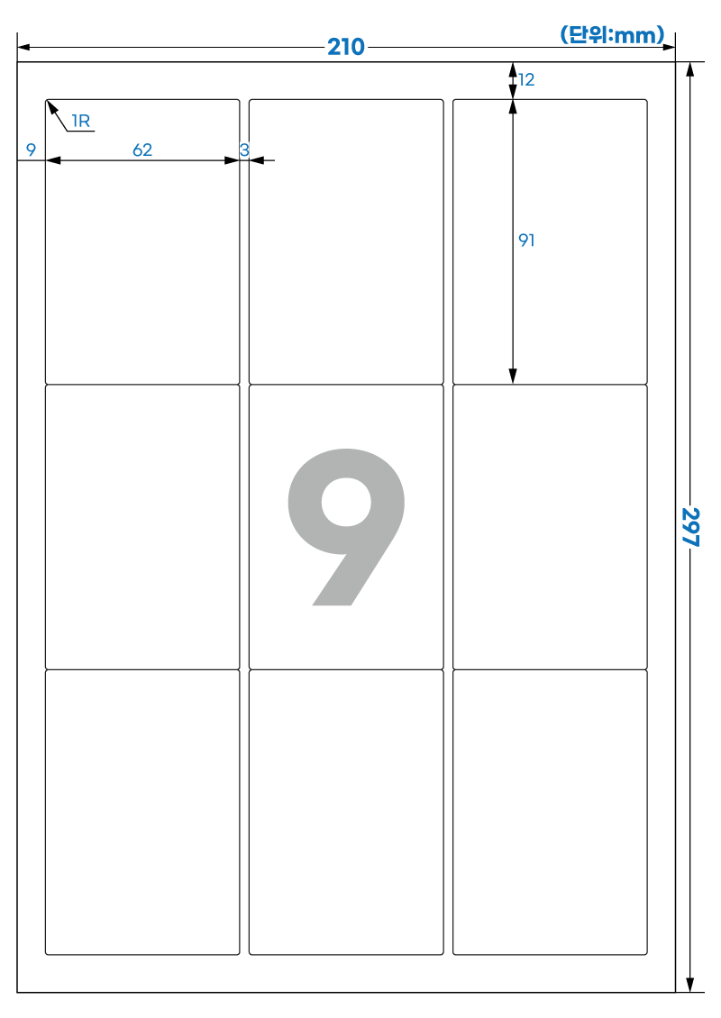 | 장당 라벨 수 | 9 라벨/장 /A4 |