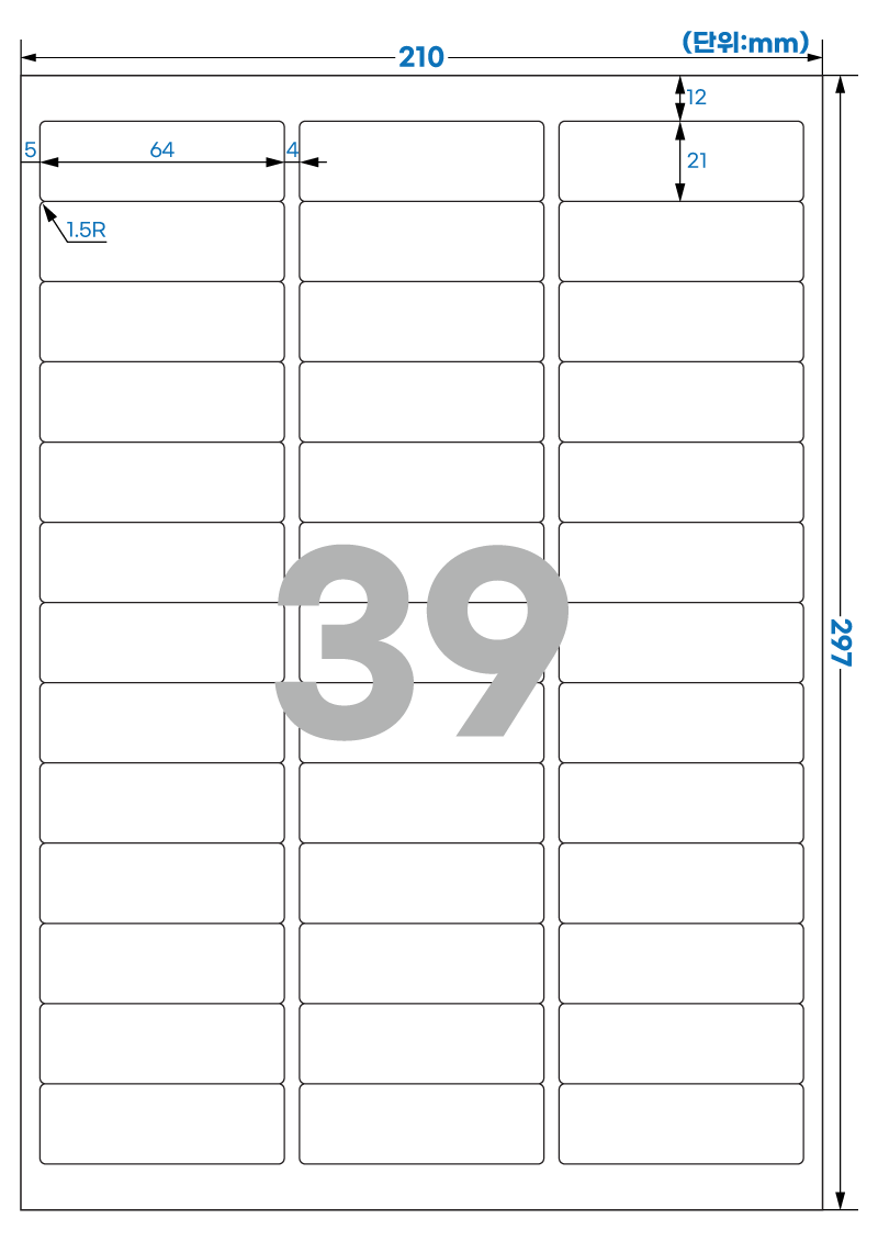 | 장당 라벨 수 | 39 라벨/장 /A4 |
