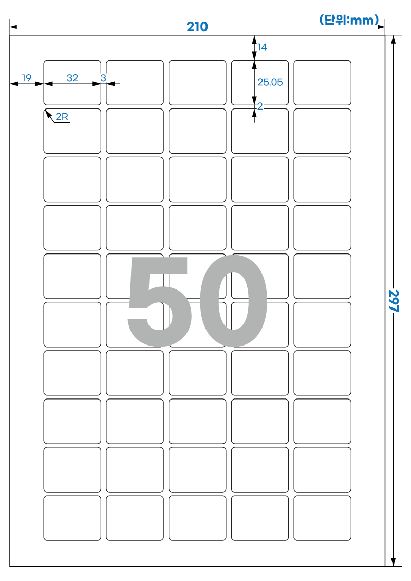 | 장당 라벨 수 | 50 라벨/장 /A4 |