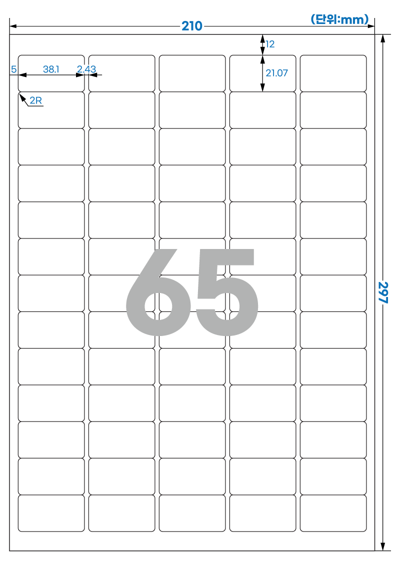 | 장당 라벨 수 | 65 라벨/장 /A4 |