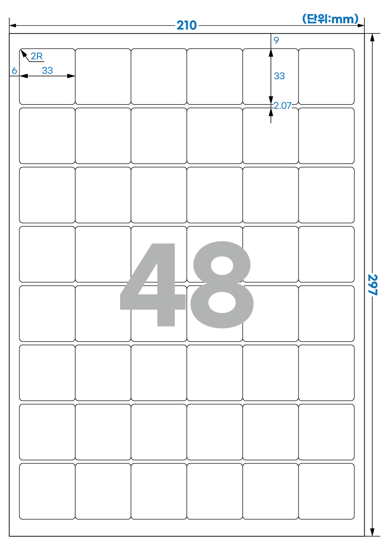 | 장당 라벨 수 | 48 라벨/장 /A4 |