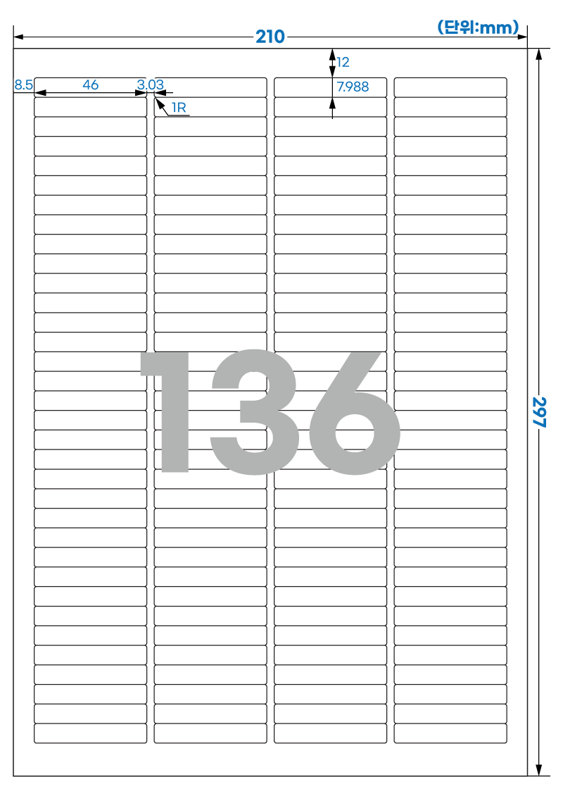 | 장당 라벨 수 | 136 라벨/장 /A4 |