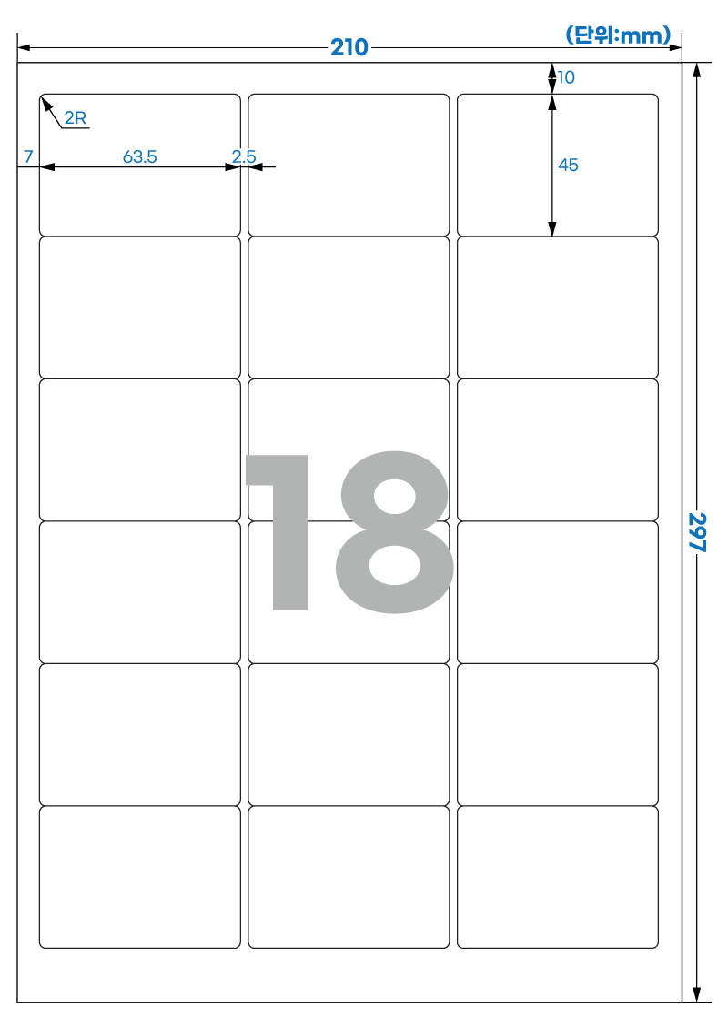 | 장당 라벨 수 | 18 라벨/장 /A4 |