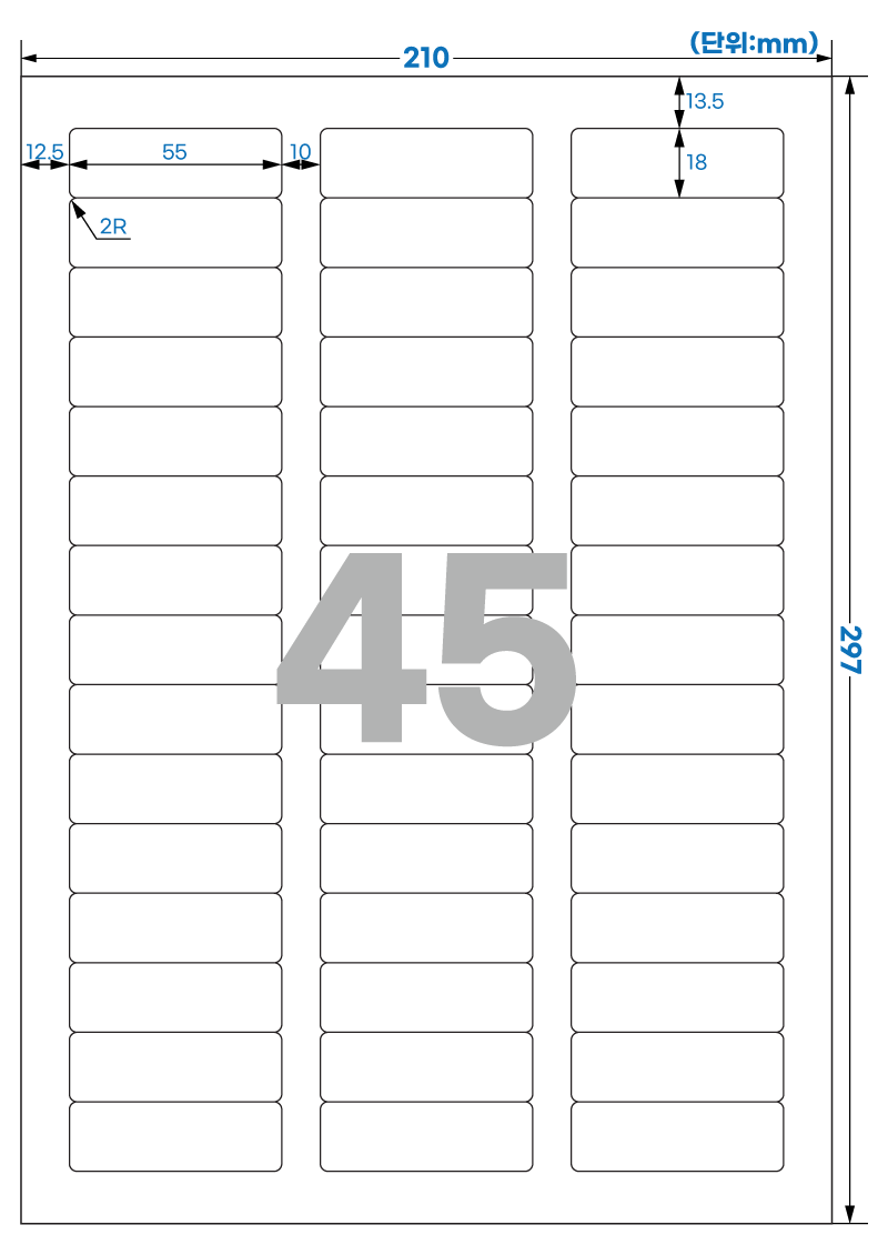 | 장당 라벨 수 | 45 라벨/장 /A4 |