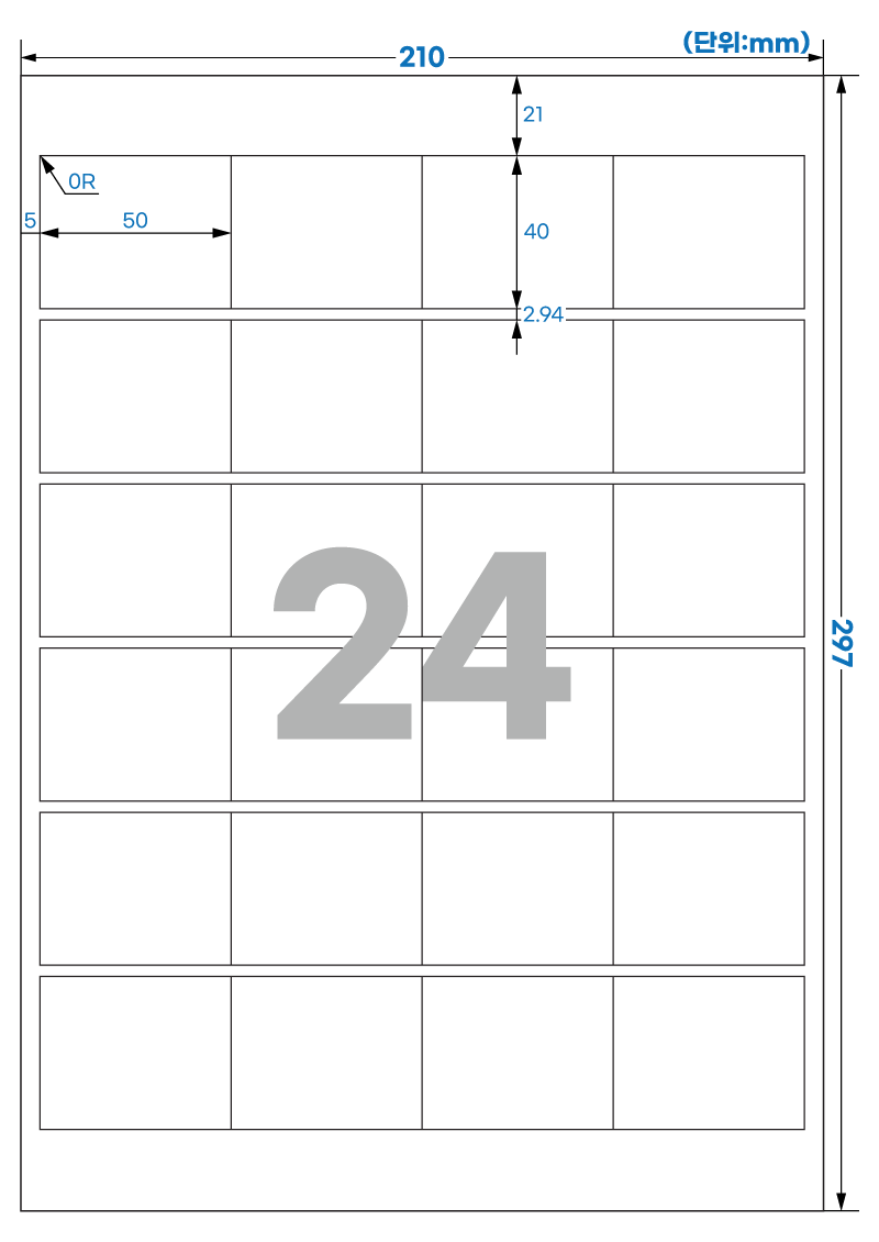 | 장당 라벨 수 | 24 라벨/장 /A4 |