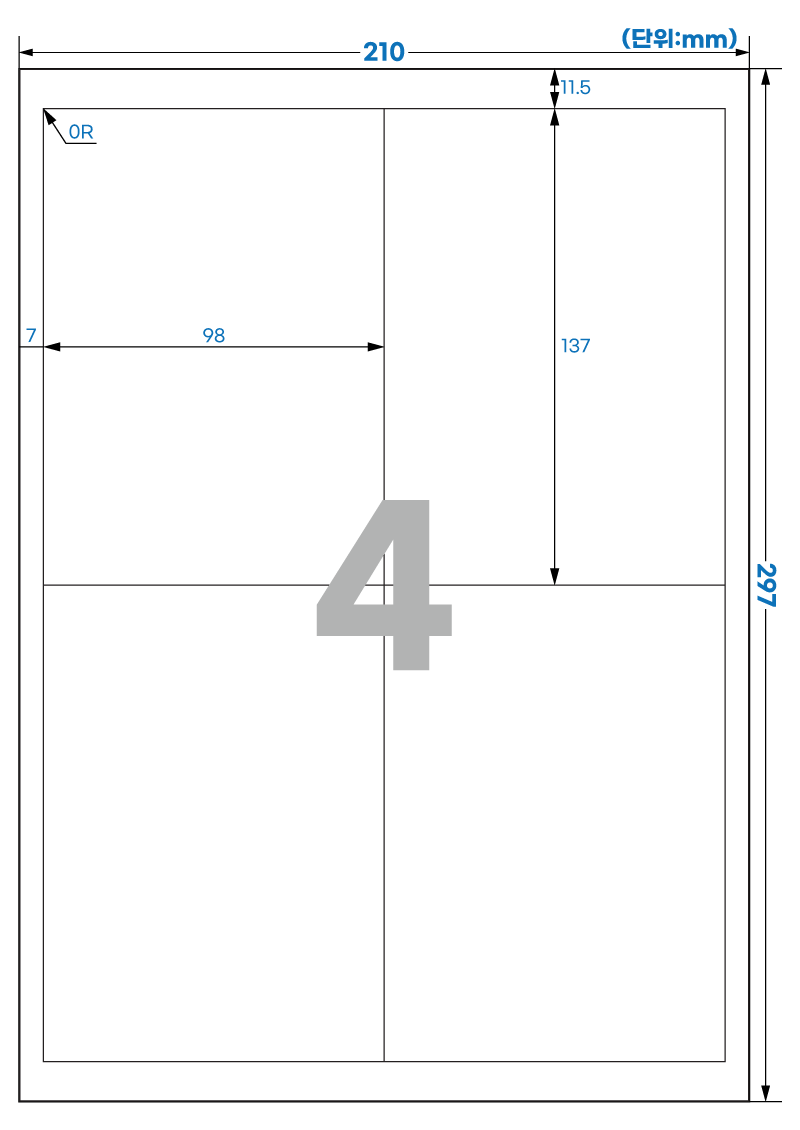 | 장당 라벨 수 | 4 라벨/장 /A4 |