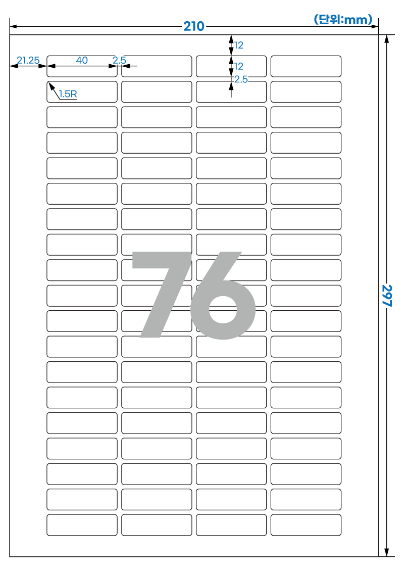 | 장당 라벨 수 | 76 라벨/장 /A4 |